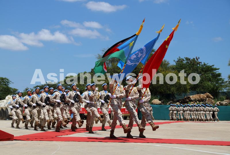 2024年10月3日,中国第十批赴南苏丹(朱巴)维和步兵营官兵步履铿锵走过检阅区。