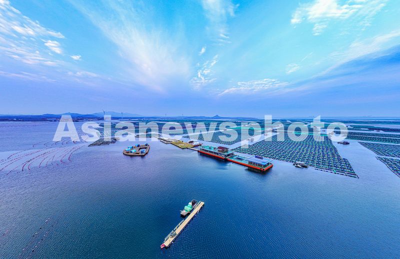 2024年10月7日,俯瞰山东省荣成市石岛管理区桑沟湾国家级海洋牧场。