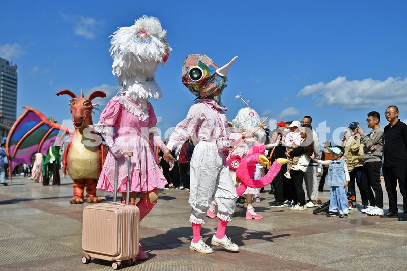 2024年10月1日,在山东省烟台市芝罘区滨海广场,角色扮演者装扮成游戏中的角色巡游表演。国庆假期,越来越多的时尚青年更加注重旅游的品质化观感和个性化体验,享受“松弛感”、追求“潮范儿”成为假日新时尚。各地消费场景不断“上新”,实现与游客的“双向奔赴”。
