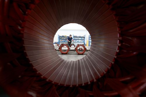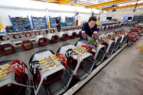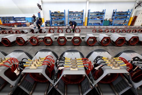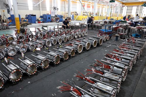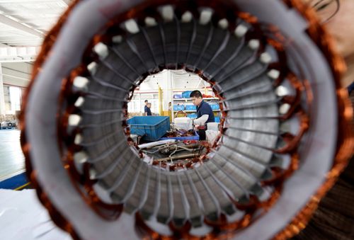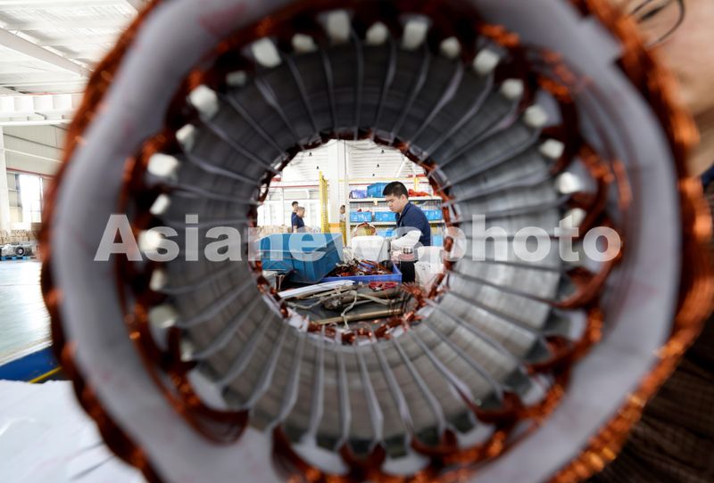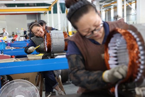 2024年10月10日,位于福建福安经济开发区的福建福凯电气有限公司,工人在生产车间进行电机配件组装。