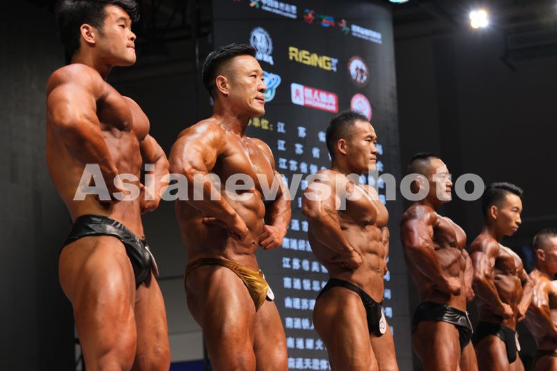 图片说明:2024年10月13日,在江苏省南通市,选手在2024年江苏省健身健美公开赛中展示。