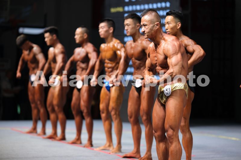 图片说明:2024年10月13日,在江苏省南通市,选手在2024年江苏省健身健美公开赛中展示。