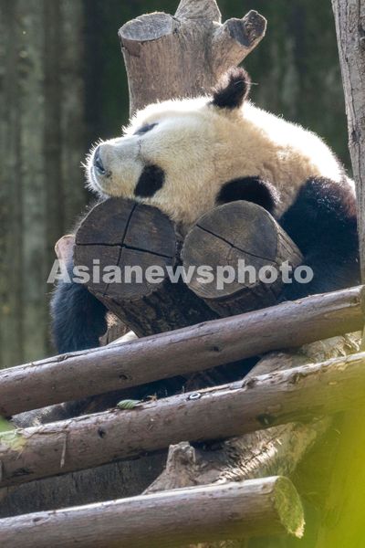 2024年10月14日,成都大熊猫繁育研究基地,大熊猫休养生息,萌态十足。