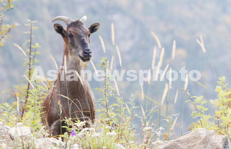图片说明:2024年10月14日,被誉为“峭壁上的舞者”岩羊在西藏日喀则地区定日县境内的绒辖沟觅食悠闲活动。