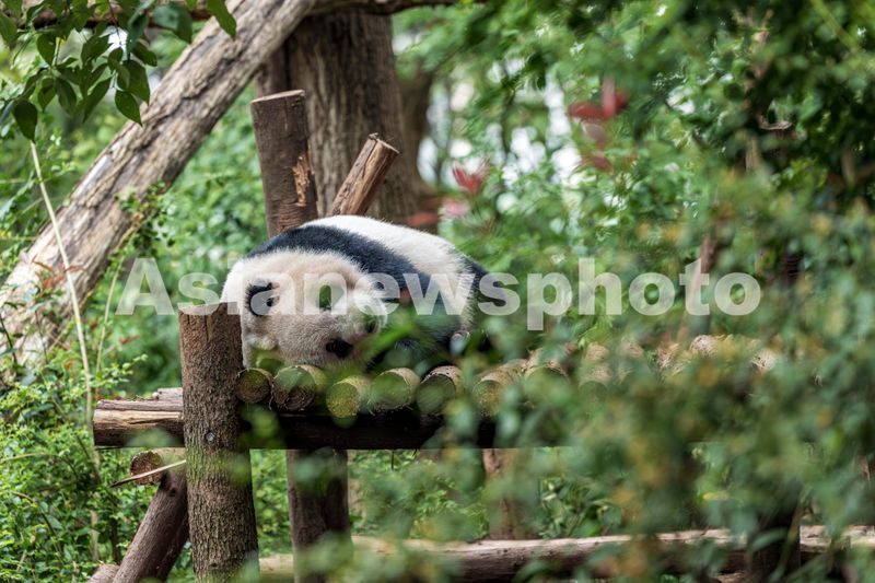 2024年10月14日,成都大熊猫繁育研究基地,大熊猫休养生息,萌态十足。
