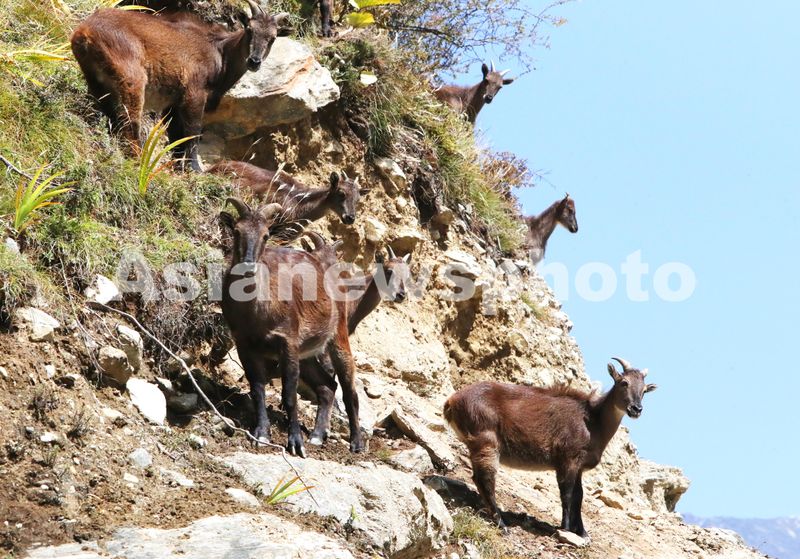 西藏日喀则:“峭壁上的舞者”岩羊 绒辖沟成群觅食享悠闲 查看组图