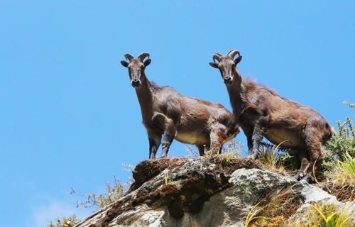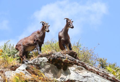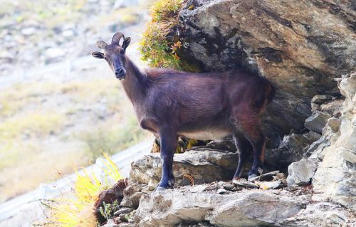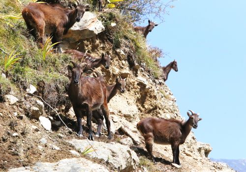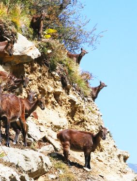 西藏日喀则:“峭壁上的舞者”岩羊 绒辖沟成群觅食享悠闲 查看组图