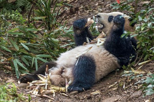 2024年10月14日,四川省成都大熊猫繁育研究基地,一些大熊猫在尽情享用新鲜的竹子和竹笋,吃得“嘎嘎香”;而有的大熊猫则喜欢爬树玩耍;有的大熊猫则是找到一个舒服的地方,美美睡上一觉,好惬意。真是又萌又可爱,萌态迷人 惹人爱,吸引大量游客前来观赏。
