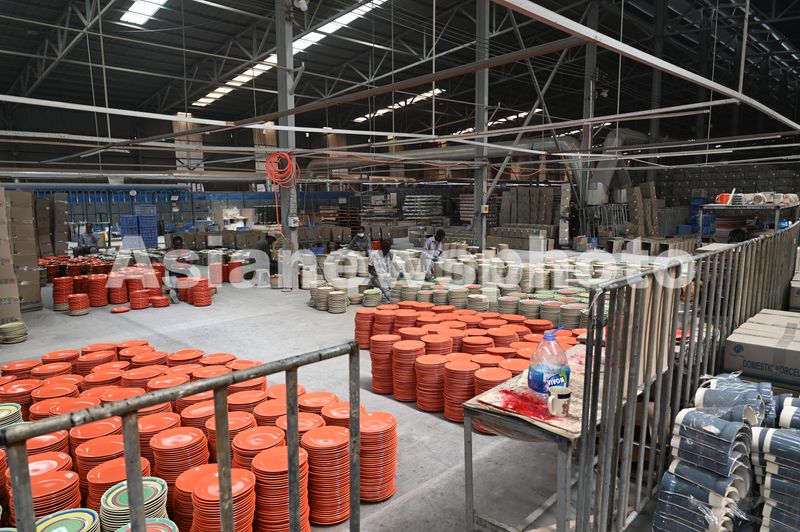 当地时间2024年10月13日,津巴布韦中资陶瓷企业阳光易丰陶瓷有限公司内,当地员工们正抓紧生产陶瓷日用品与建材用品。