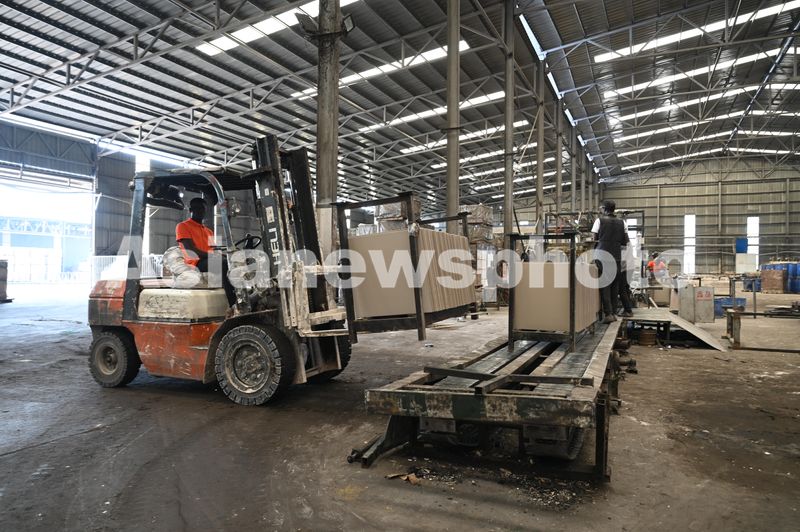 当地时间2024年10月13日,津巴布韦中资陶瓷企业阳光易丰陶瓷有限公司内,当地员工们正抓紧生产陶瓷日用品与建材用品。
