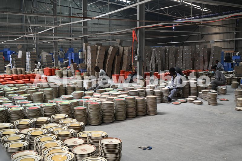 当地时间2024年10月13日,津巴布韦中资陶瓷企业阳光易丰陶瓷有限公司内,当地员工们正抓紧生产陶瓷日用品与建材用品。
