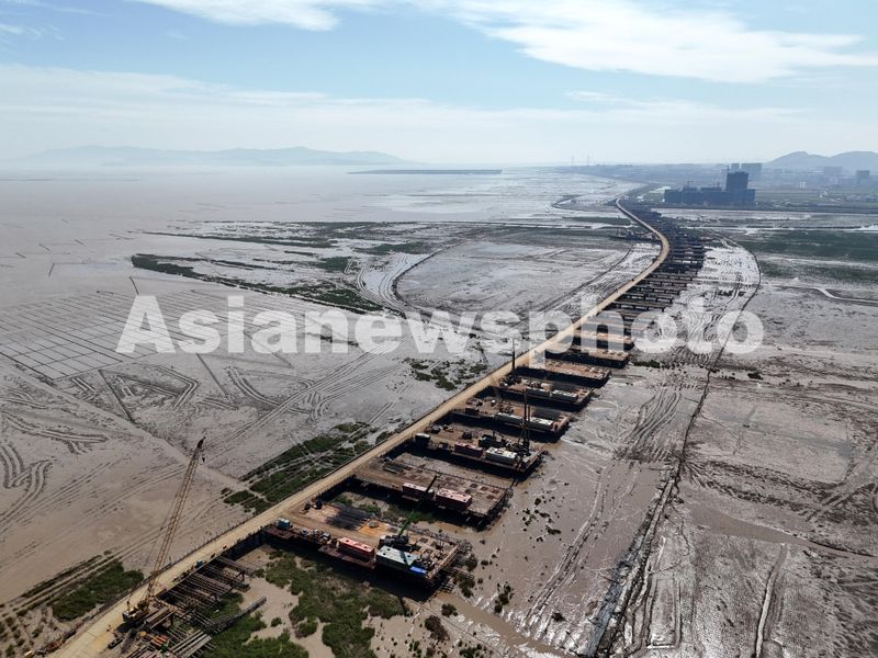 浙江温州:乐清湾桥梁建设正酣 查看组图