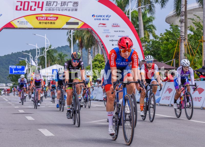 图片说明:2024年10月20日,2024环广西女子公路自行车世界巡回赛在南宁市首次举行。