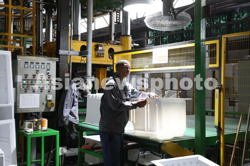 图片说明:2024年4月2日,南非海信家电工业园,工人在冰箱生产线上工作。