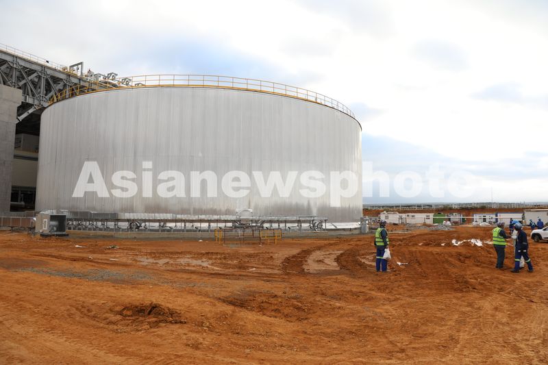 2024年4月4日,正在建设中的南非红石100兆瓦塔式熔盐光热电站项目。