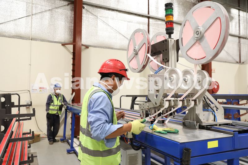 2024年4月4日,正在建设中的南非红石100兆瓦塔式熔盐光热电站项目施工现场,中方工人在施工中。