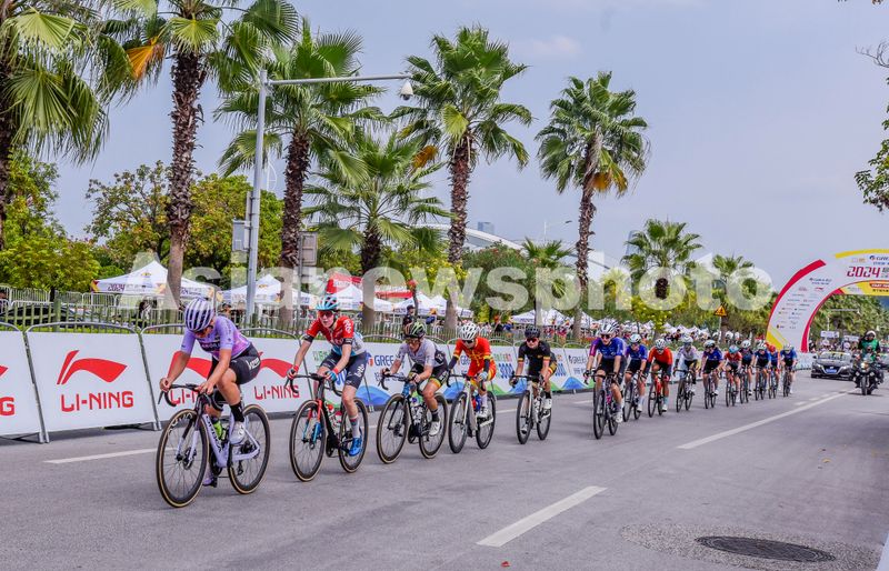 图片说明:2024年10月20日,2024环广西女子公路自行车世界巡回赛在南宁市首次举行。