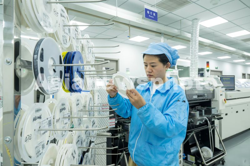 图片说明:2024年10月22日,在安徽省合肥庐阳经济开发区辖区安徽鼎立网络科技有限公司,技术人员正在对应用于智慧社区领域的中控电路板智能传感器进行生产研发。