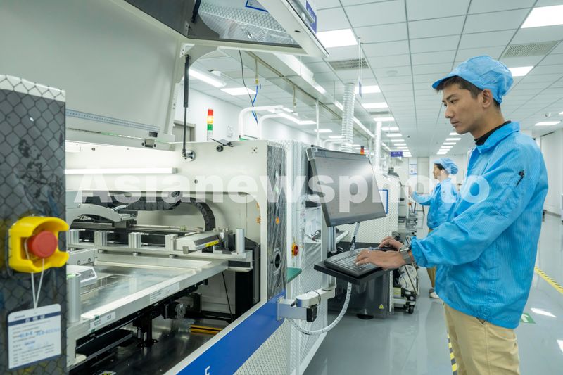 图片说明:2024年10月22日,在安徽省合肥庐阳经济开发区辖区安徽鼎立网络科技有限公司,技术人员正在对应用于智慧社区领域的中控电路板智能传感器进行生产研发。