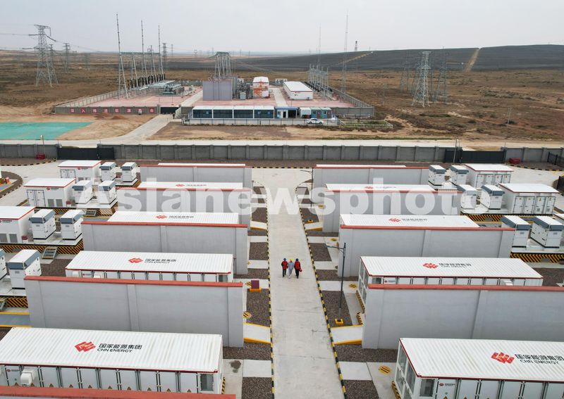 2024年10月17日,国网宁东供电公司职工正在宁夏灵武市宁东镇国能曙光第一储能电站开展设备巡视,排除设备隐患,服务储能产业发展。