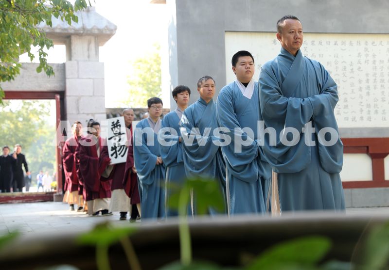 图片说明:10月23日,安徽省蒙城县庄子祠内,各界的人士齐聚一起,通过各种活动祭祀先贤庄子,感受道家传统历史文化。