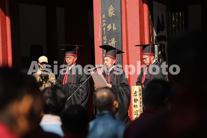 图片说明:10月23日,安徽省蒙城县庄子祠内,各界的人士齐聚一起,通过各种活动祭祀先贤庄子,感受道家传统历史文化。