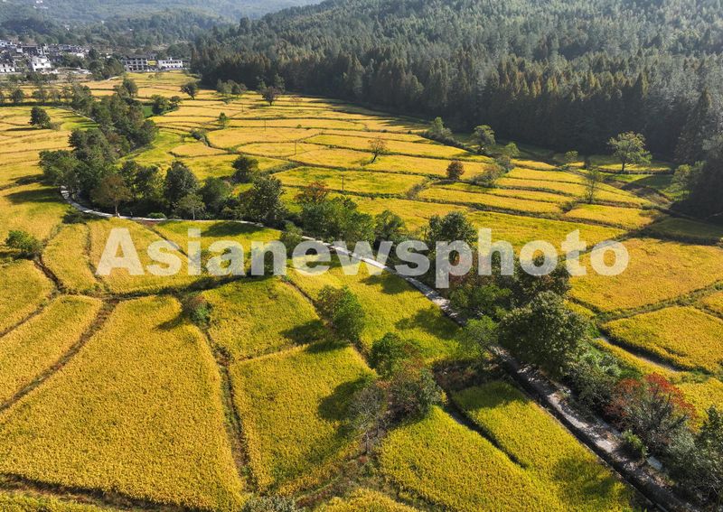 图片说明:2024年10月23日,安徽省黄山市黟县宏村拍摄的秋日田园风光。(无人机照片)