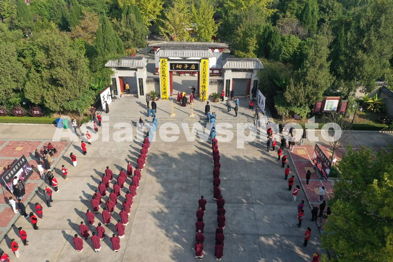 图片说明:10月23日,安徽省蒙城县庄子祠内,各界的人士齐聚一起,通过各种活动祭祀先贤庄子,感受道家传统历史文化。
