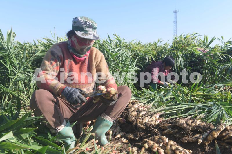 2024年10月23日,河北省石家庄新乐市化皮镇化皮村农民正在收获生姜。