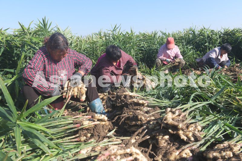 2024年10月23日,河北省石家庄新乐市化皮镇化皮村农民正在收获生姜。