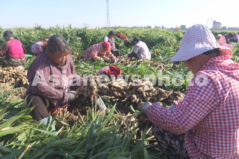 2024年10月23日,河北省石家庄新乐市化皮镇化皮村农民正在收获生姜。当日是霜降节气,气温开始下降,各地农民抢抓农时做好农作物的采收、播种、御寒管理等工作,田间地头一派繁忙景象。