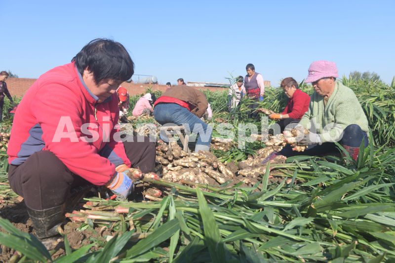 2024年10月23日,河北省石家庄新乐市化皮镇化皮村农民正在收获生姜。
