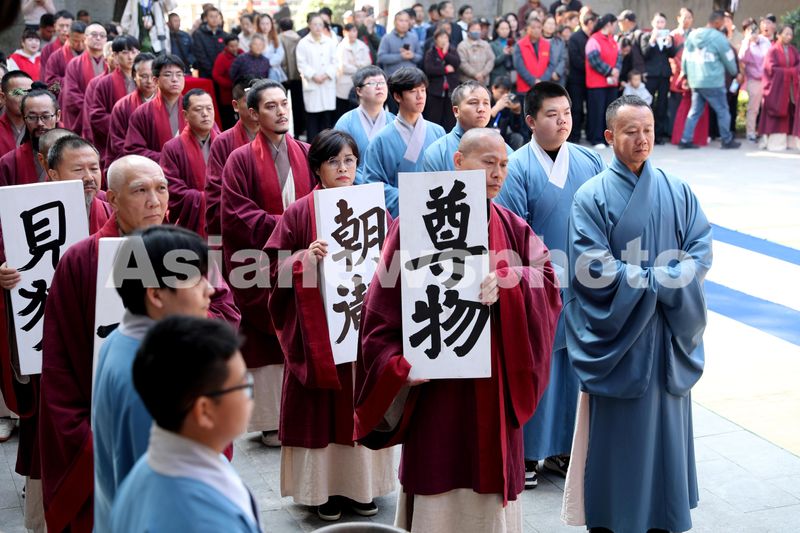 图片说明:10月23日,安徽省蒙城县庄子祠内,各界的人士齐聚一起,通过各种活动祭祀先贤庄子,感受道家传统历史文化。