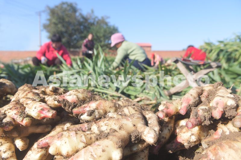 2024年10月23日,河北省石家庄新乐市化皮镇化皮村农民正在收获生姜。