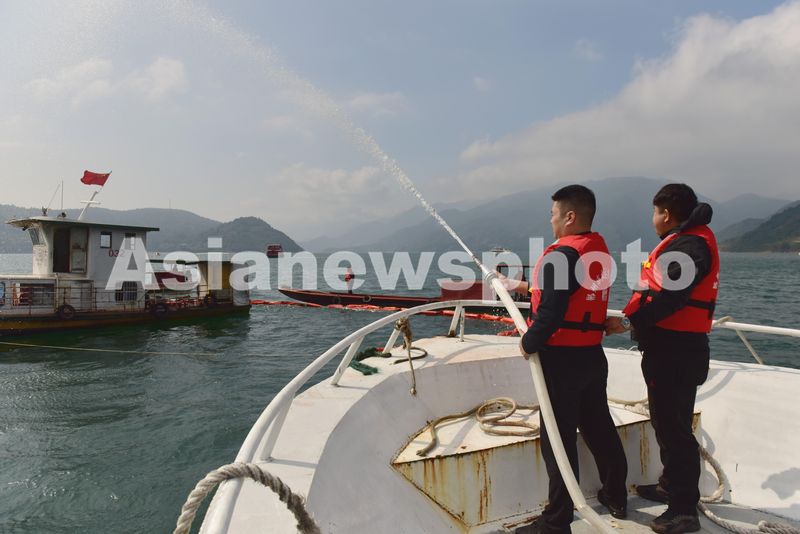 图片说明:2024年10月23日,一场水上交通安全应急救援及水运防污染演练在湖南省郴州市东江湖长盈头水域举行。