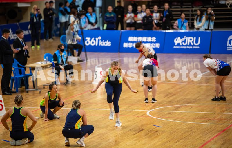 图片说明:10月24日,"2024年中国国际跳绳公开赛”在安徽省淮北市体育馆开赛。