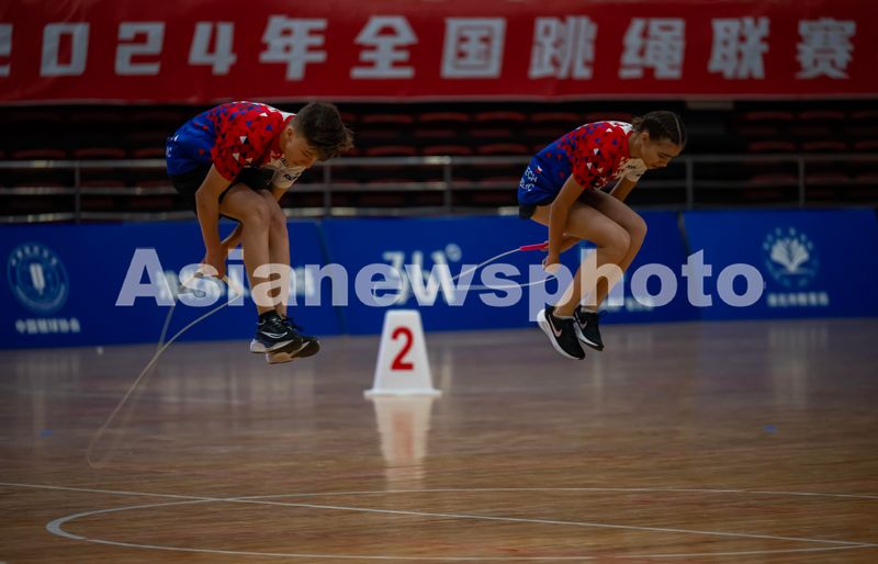 图片说明:10月24日,"2024年中国国际跳绳公开赛”在安徽省淮北市体育馆开赛。