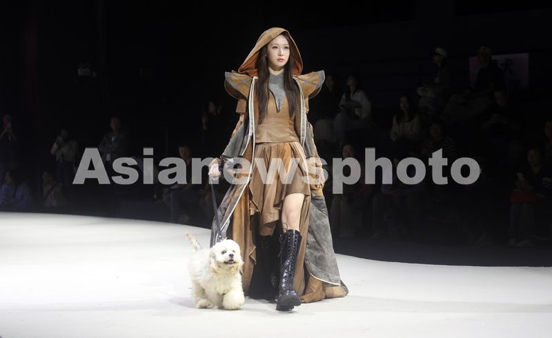 图片说明:2024年10月27日,上海宠物时装周萌宠潮流时尚走秀在杨浦滨江国际时尚中心举办,毛孩子主人携猫狗宝贝变身时装模特亮相T台萌趣十足。