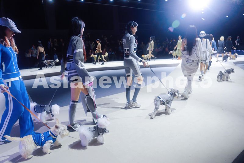 图片说明:2024年10月27日,上海宠物时装周萌宠潮流时尚走秀在杨浦滨江国际时尚中心举办,毛孩子主人携猫狗宝贝变身时装模特亮相T台萌趣十足。