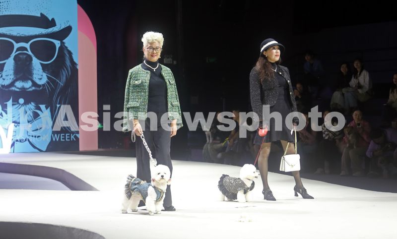 2024年10月27日,上海宠物时装周萌宠潮流时尚走秀在杨浦滨江国际时尚中心举办,毛孩子主人携猫狗宝贝变身时装模特亮相T台萌趣十足。