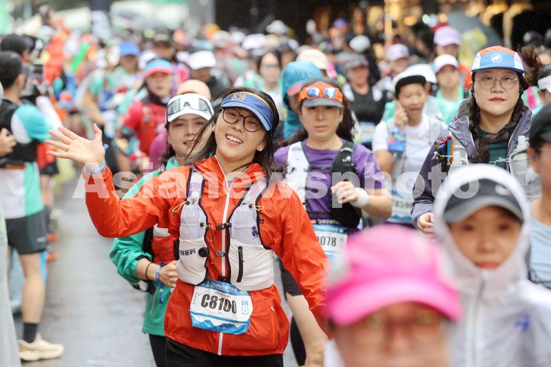2024年10月26日,在浙江省湖州市德清县莫干山国际旅游度假区,参赛选手在2024凯乐石莫干山跑山赛中出发。