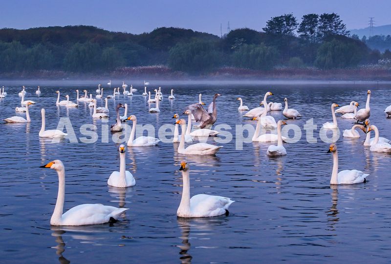 山东荣成:满池天鹅舞 秋景入画来 查看组图