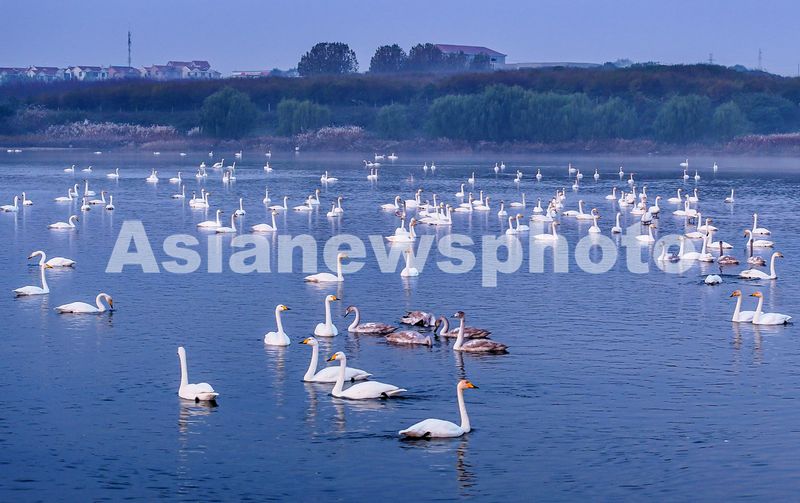 山东荣成:满池天鹅舞 秋景入画来 查看组图