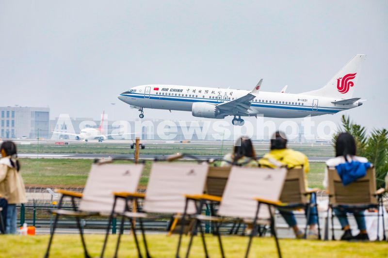 2024年10月26日,重庆,市民在超级加倍飞行营地主题露营基地内观看即将着陆在重庆江北国际机场的飞机。