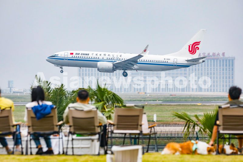 2024年10月26日,重庆,市民在超级加倍飞行营地主题露营基地内观看即将着陆在重庆江北国际机场的飞机。