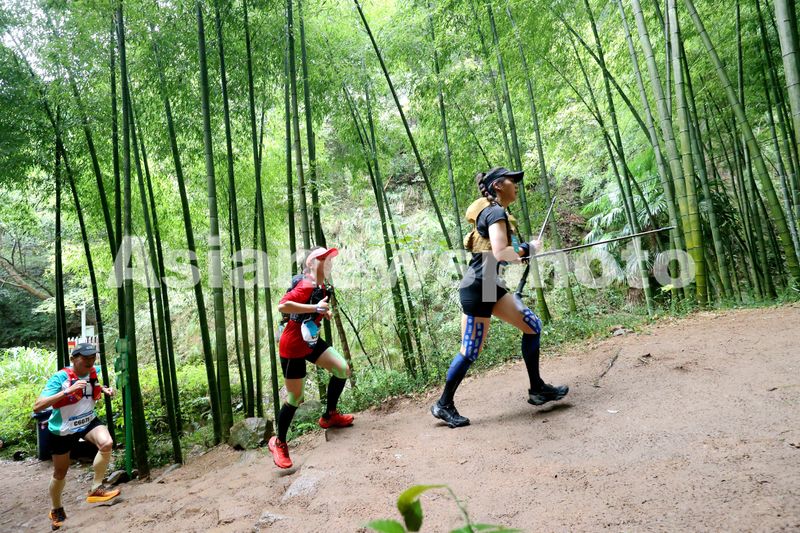 2024年10月26日,在浙江省湖州市德清县莫干山国际旅游度假区,参赛选手穿梭在竹林内。