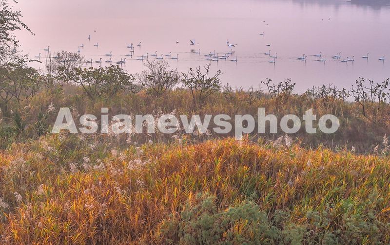 山东荣成:满池天鹅舞 秋景入画来 查看组图