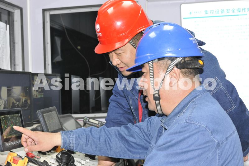 2024年10月25日凌晨,宁夏至湖南±800千伏特高压直流工程(宁1标段)跨越银兰高铁施工现场,电力施工人员正在核查集控设备数据。