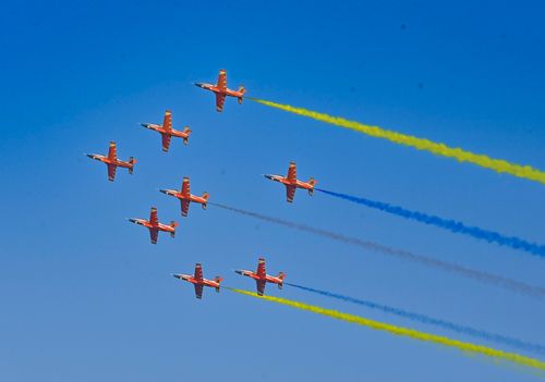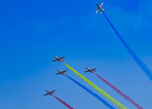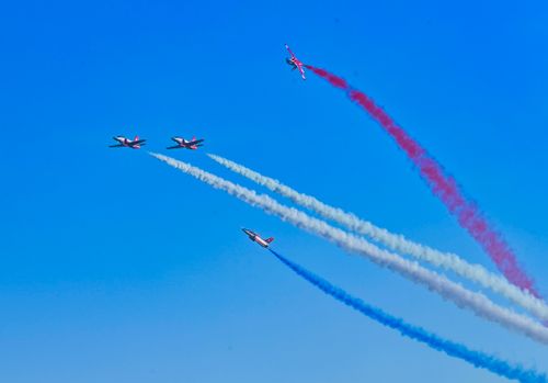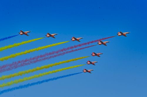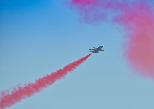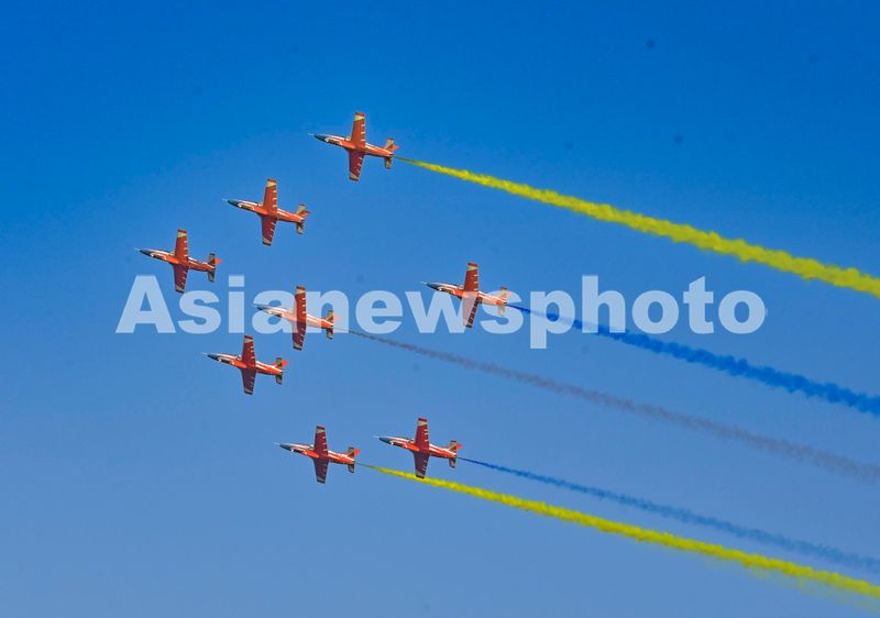 2024年11月2日,“红鹰”飞行表演队以彩烟编队方式特技飞行表演,充分展现飞行员的精湛技术。
