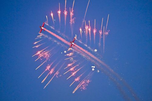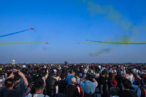 特技飞行表演作为南昌飞行大会的重头戏倍受关注,中国商飞的国产大飞机C919、ARJ-21 两机编队进行动态展示,“红鹰”飞行表演队、红星表演队、俄罗斯首航特技飞行表演队等多支中外顶级飞行表演队,为观众带来了震撼的特技飞行以及烟火表演。